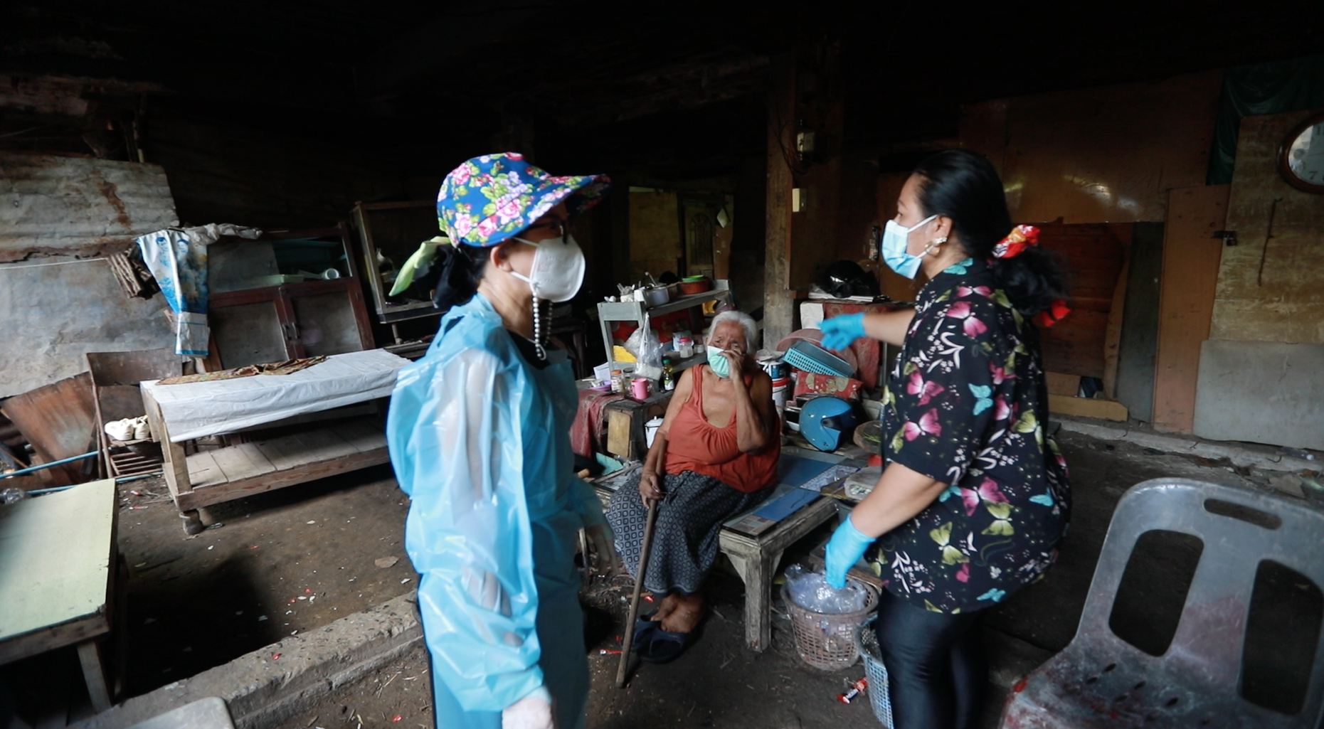 ครูประทีป อึ้งทรงธรรม ฮาตะ ผู้ก่อตั้งและเลขาธิการมูลนิธิดวงประทีป ลงพื้นที่ มอบถุงยังชีพ บรรเทาความเดือดร้อนชาวชุมชนตึกร้างบางพลัด พร้อมเสนอแนะการช่วยเหลือชาวชุมชนในระยะยาว