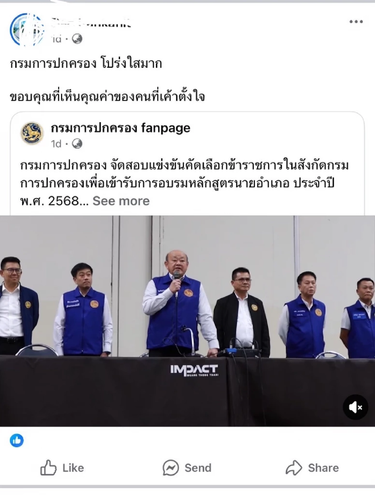 ขอบคุณท่าน มท.1 ท่านปลัดกระทรวง ท่านอธิบดีกรมการปกครอง ที่ทำให้การสอบด้วยระบบคุณธรรมเกิดขึ้นจริงในวันนี้ , ที่ผ่านมา เราจะได้ยินตลอดเรื่องจะขึ้นบัญชี จะสอบได้ล้วนมีตั๋วกันทั้งนั้น ... แต่ครั้งนี้ คนอื่นๆ ที่เราไม่รู้จักเราไม่รู้ค่ะ แต่ที่เรารู้จักแล้วสอบผ่านแต่ละคนเค้าเก่งจริงนะ ความสามารถ การทำงานและอ่านหนังสือหนักจริงๆ ,โปร่งใส เป็นธรรม เพราะเราครอบครัวเดียวกัน ,ยืนยันอีกเสียงครับ สุจริต โปรงใสคือหัวใจนักปกครอง ถ้าปลัดอำเภอโนเนมอยู่บนเทือกเขาภูพานห่างไกลเจ้านายแบบผมมีชื่อสอบได้ ก็คงการันตีได้นะครับ ,ขอแสดงความยินดี นอ. 85,86,87 รอบนี้มีแต่คนเก่งๆ และมีความสามารถเป็นที่ประจักษ์ ,ขอบคุณที่เห็นคุณค่าของคนที่เขาตั้งใจ ,เห็นรายชื่อผู้สอบผ่านแล้ว ค่อนข้างเชื่อได้ว่า... ข่าวที่ออกมาก่อนหน้านั้น เป็นเพียงข่าวลือ