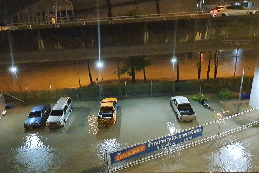 ขณะที่เส้นทางรัชดา-ลาดพร้าว เป็นอีกจุดหนึ่งที่เผชิญกับน้ำท่วมสูง ระดับน้ำเกือบเกินครึ่งคันรถ
