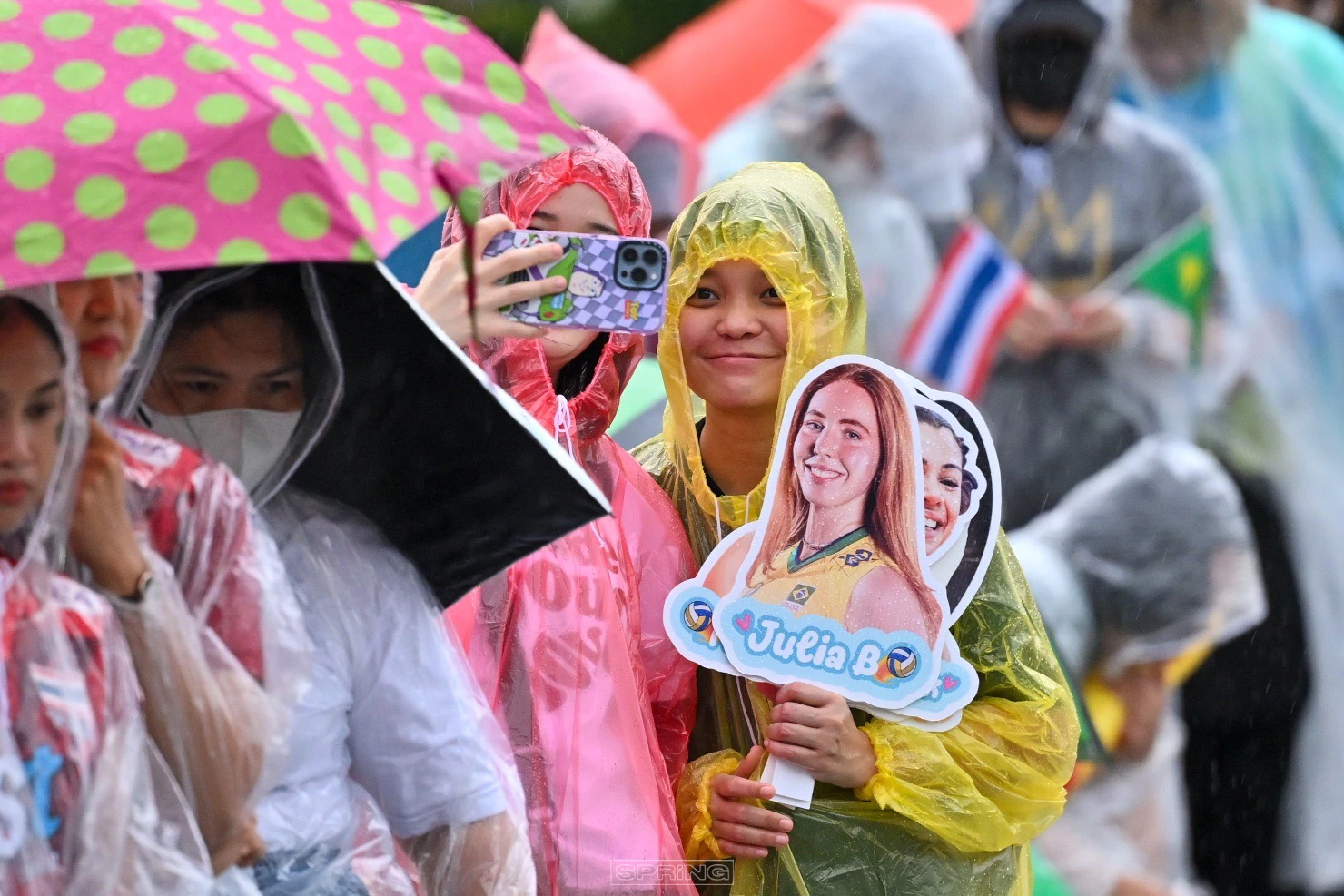 ส่วนแฟนคลับ "สู้ไม่ถอย" แม้ฝนจะเทกระหน่ำลงมาอย่างหนัก บริเวณหน้า สนาม อินดอร์ สเตเดียม หัวหมาก แต่แฟน ๆ กองเชียร์ ชาวไทยที่ตั้งใจมาเชียร์นักตบลูกยางสาวทีมชาติไทย พบ ทีมชาติบราซิล ก็ไม่หวั่น ต่างตั้งตารอเพื่อเข้าชมการแข่งขันวอลเลย์บอล เวลา 20.30 น. ตามเวลาประเทศไทย